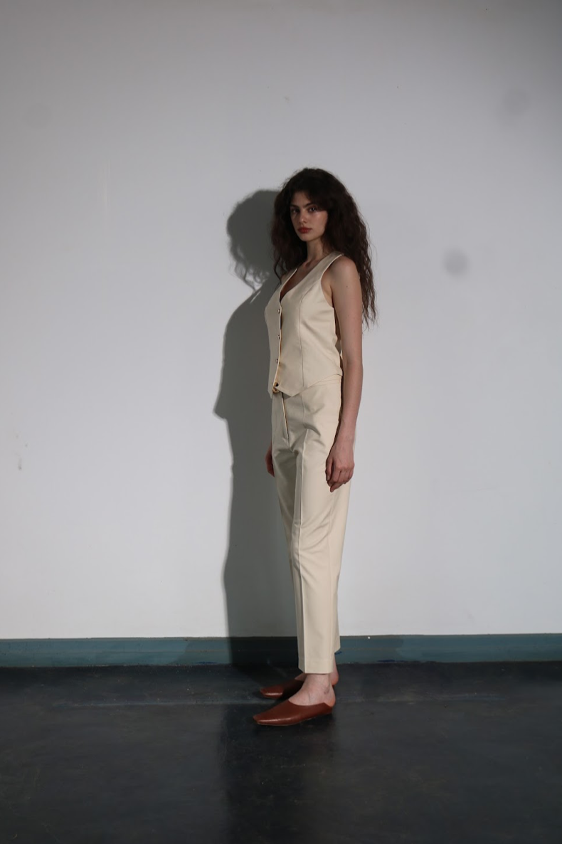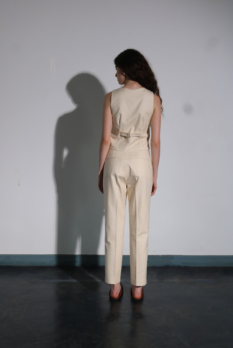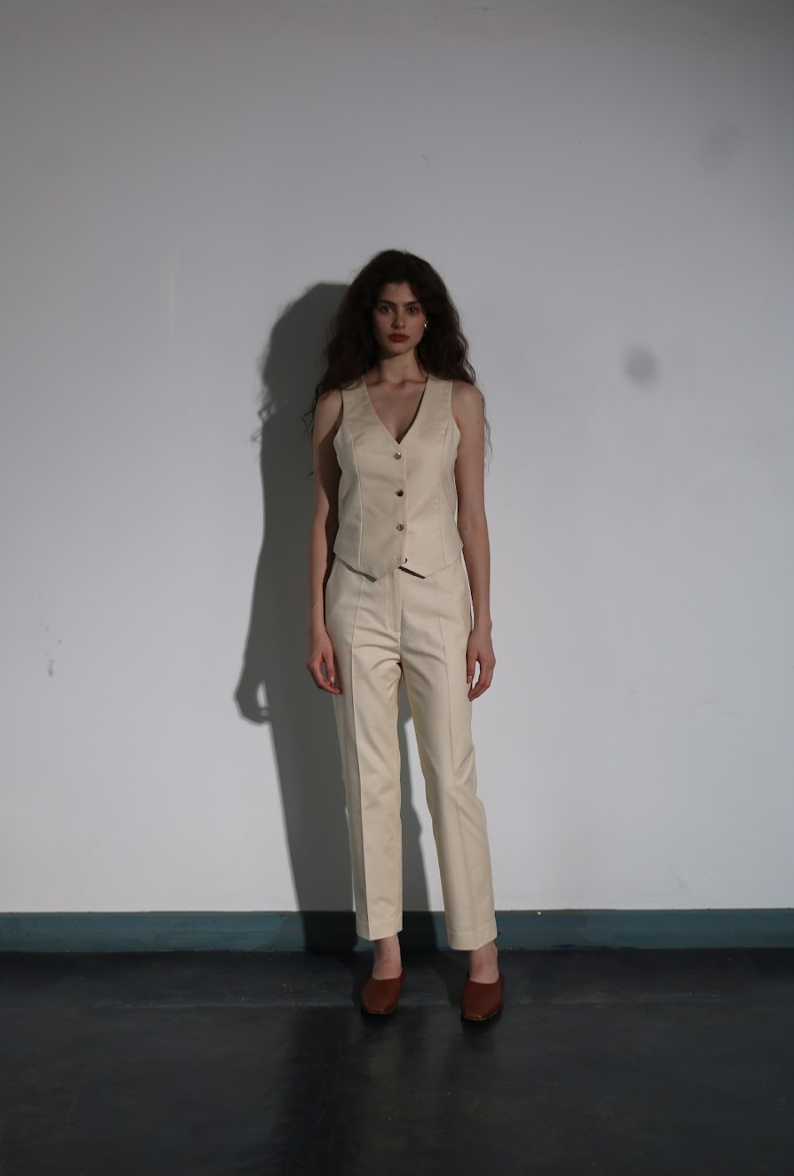 A Calça Bertha em off white é criativa e elegante, com design autoral e alfaiataria impecável. Feita em sarja de algodão com elastano, oferece estrutura com conforto na medida certa. Seu caimento reto, levemente ajustado, valoriza a silhueta com sofisticação.