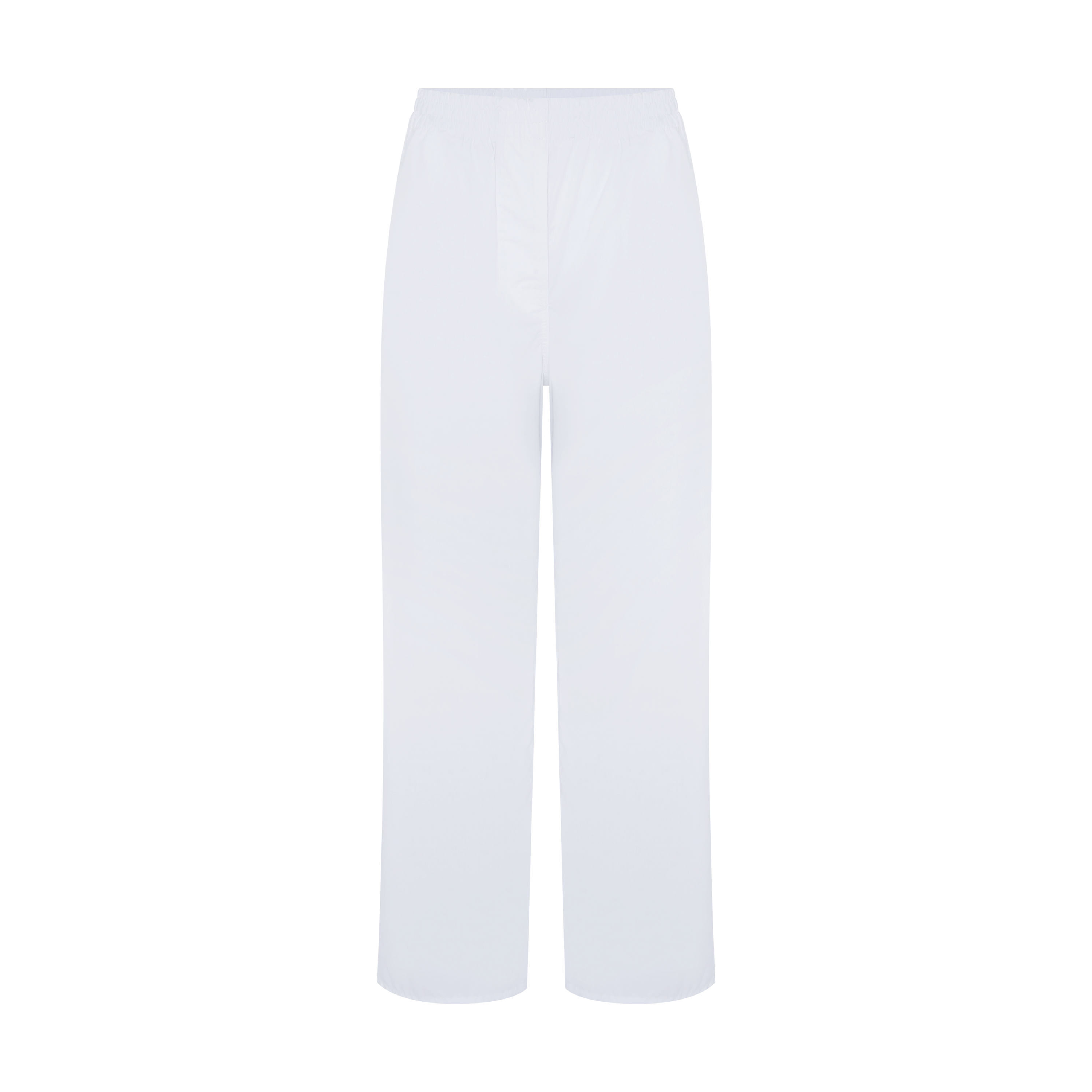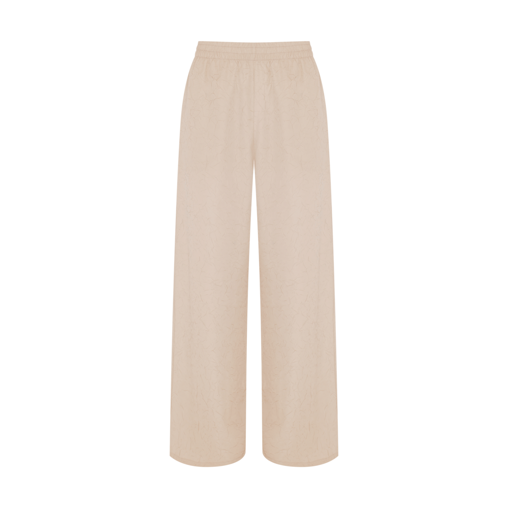 Em algodão nobre empapelado, a Calça Vick traz estrutura e frescor. Disponível em branco, bege e azul claro, tem cós de elástico e corte reto. Ideal com a Camisa Vick para uma proposta monocromática ou modular elegante.