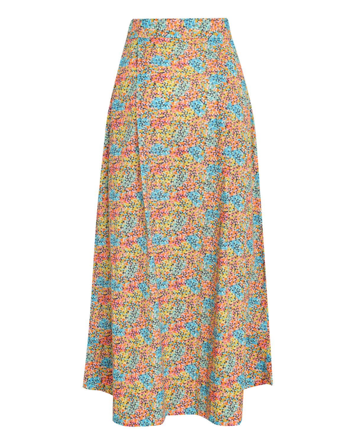 Delicada e feminina, a Saia Alicia em algodão surge em uma nova versão com estampa floral multicolorida sobre fundo vibrante. A cintura alta marcada e a leve amplitude da modelagem conferem fluidez ao visual, criando uma silhueta encantadora e cheia de movimento.